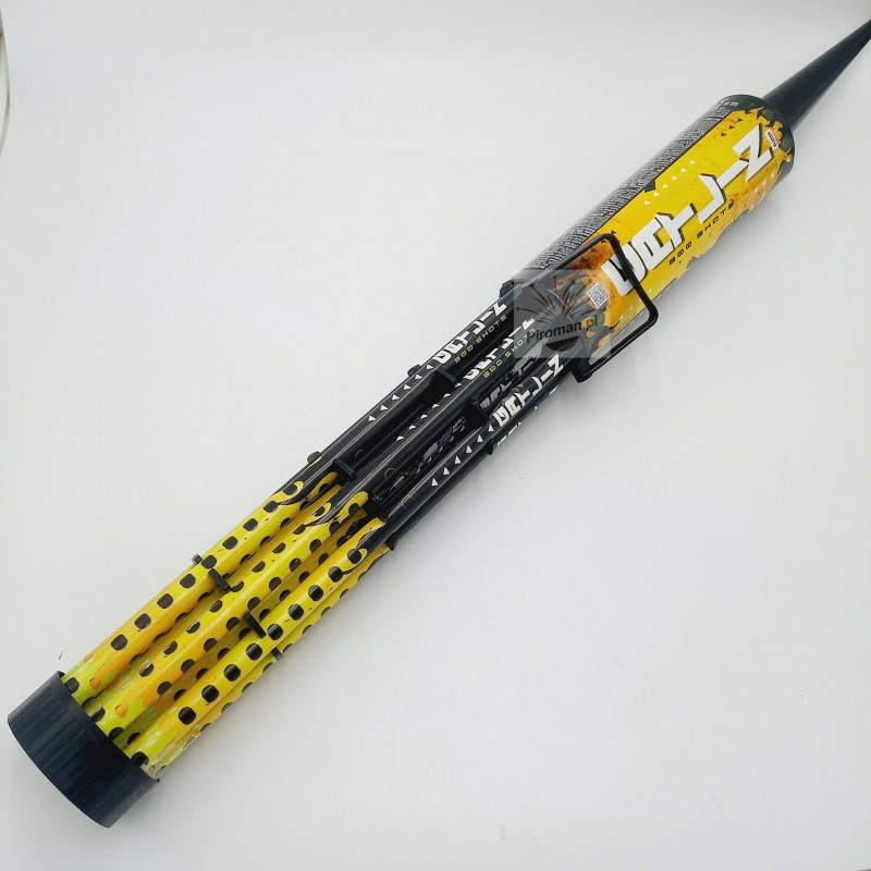 Gatling Gatlin GAT300 Klasek to potężna wyrzutnia o 300 strzałach, zaprojektowana, by dawać długi, dynamiczny pokaz efektów świetlnych i dźwiękowych. Każda seria strzałów tworzy sekwencję barwnych eksplozji i donośnych huków, idealną na duże imprezy plenerowe, festyny i pokazy sylwestrowe. Solidna konstrukcja zapewnia stabilne odpalanie i powtarzalność efektów. Produkt przeznaczony wyłącznie dla osób dorosłych — stosuj zgodnie z instrukcją i zasadami bezpieczeństwa.
