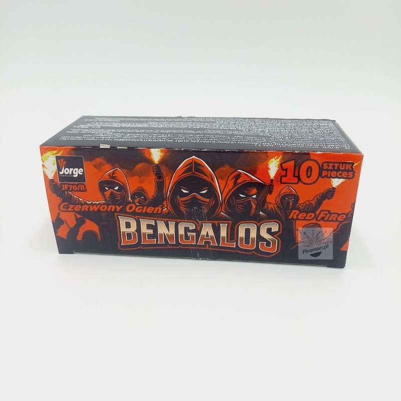 Ognie wrocławskie Bengalos JF70R od Jorge w zestawie 10 sztuk to intensywnie czerwone pochodnie dymno-świetlne, idealne do opraw meczowych, sesji zdjęciowych, eventów i akcji kibicowskich. Dają mocny, nasycony kolor oraz stabilne i efektowne spalanie, tworząc wyrazisty klimat każdego wydarzenia. Niezawodny zapłon i prosta obsługa sprawiają, że produkt jest chętnie wybierany przez osoby szukające silnego efektu wizualnego w sprawdzonej jakości marki Jorge.